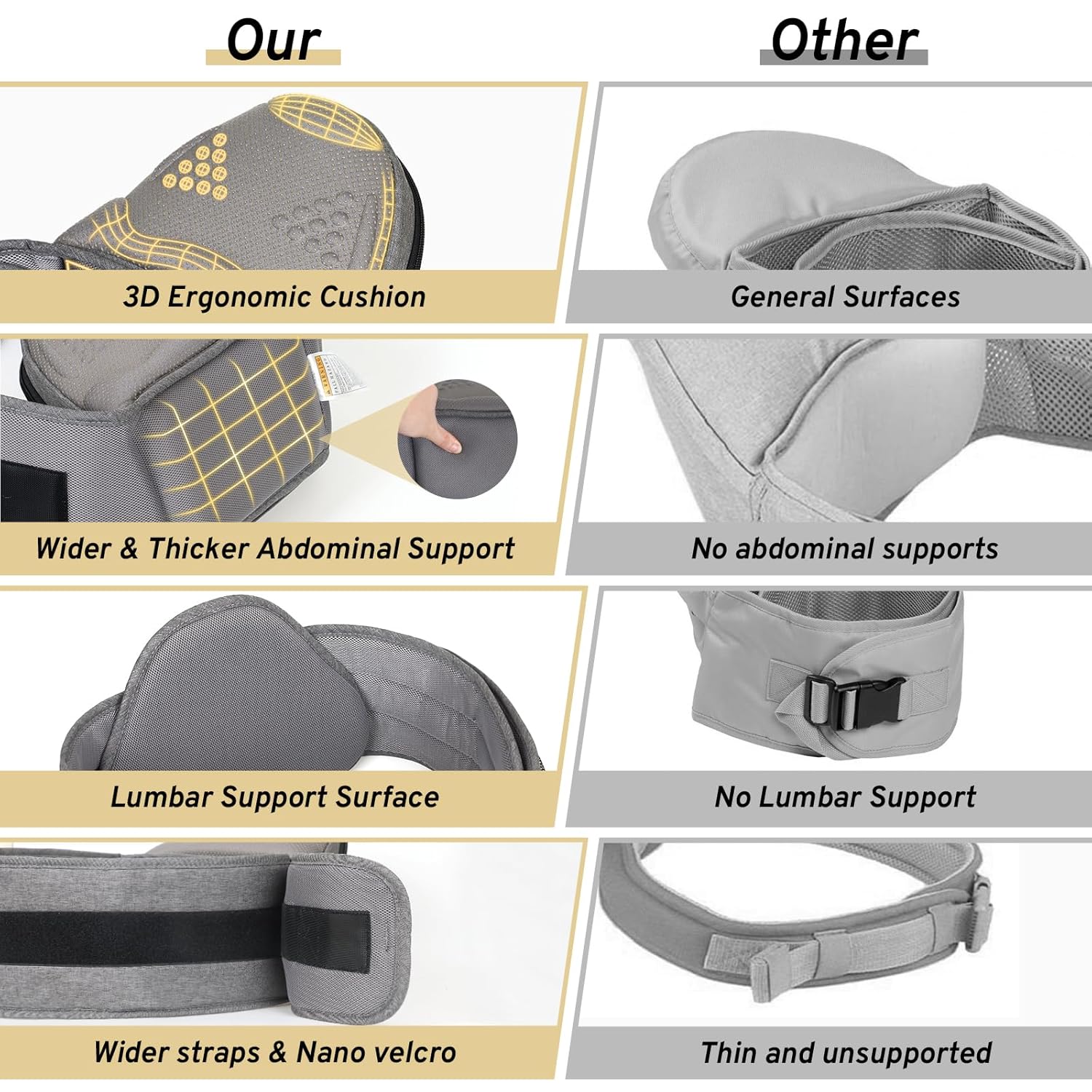 Ergonomic Hip Waist Seat Baby Carrier with Adjustable Waistband, Lumbar & Back Support, and Multiple Pockets – Ideal for Newborns & Toddlers (up to 45 lbs/20.4 kg).