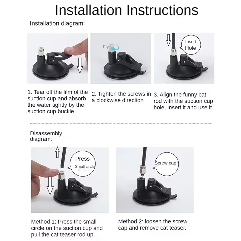 - Saugnapf-Basis: Befestigen Sie das Spielzeug einfach an jeder glatten Oberfläche, sodass Ihre Katze unabhängig ohne Ihre Hilfe spielen kann.